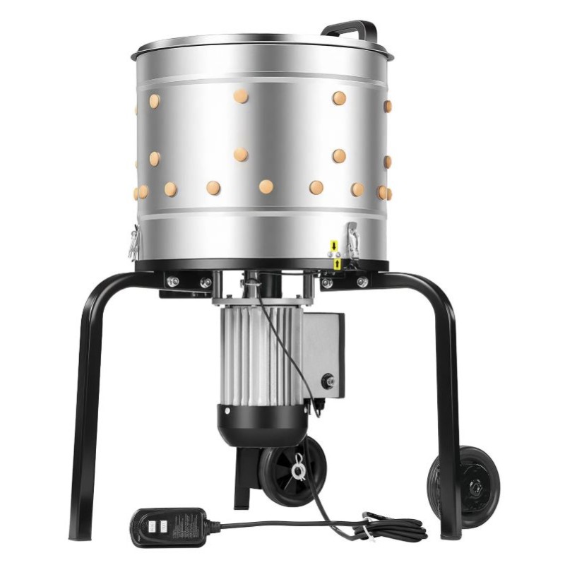 Машината е оборудвана с мощен електрически мотор от 500 W, който осигурява стабилна работа дори при непрекъснато натоварване. Барабанът с диаметър 400 мм предлага достатъчен обем за обработка на пилета, патици и гъски, като същевременно остава компактен и лесен за съхранение.