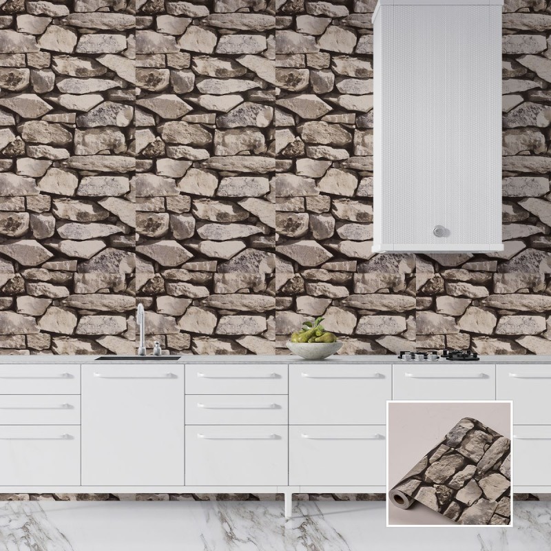 Ролков тапет винил Lux 203-1TI, Камъни, самозалепващ, 10м*53см